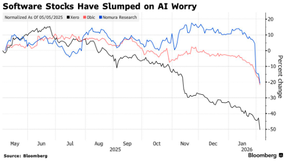 “软件股遭受重创,因Anthropic公司为其Cowork产品推出新工具,”他补充道,“新工具的实用性尚待验证,但投资者已决定下调软件股的估值。”